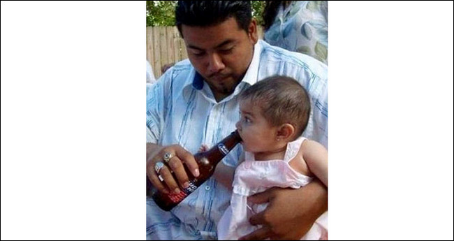 2. MirasEntah apa yang ada di benak pria ini, menenggakkan bayinya sebotol miras di sebuah pesta taman. Walaupun terkesan seperti bercanda namun sang bayi terlihat begitu haus.