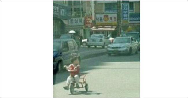 8. Bersepeda di Jalan RayaEntah bagaimana caranya sampai anak kecil yang ada di gambar bisa masuk ke jalan raya tanpa pengawasan orangtuanya. Terlihat beberapa mobil sudah menuju ke arah sepeda anak tersebut.