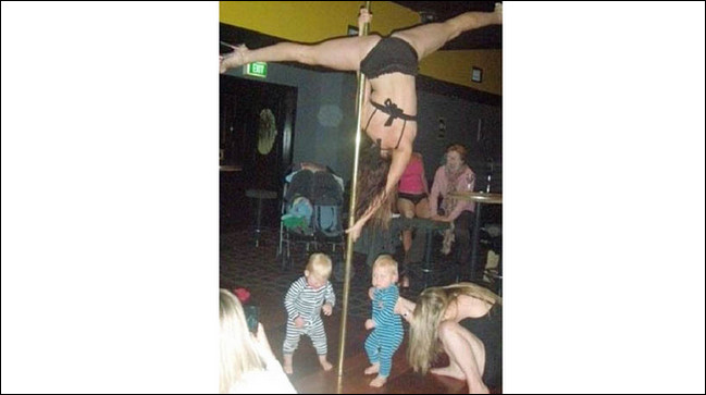 6. StripteasePara penari striptis ini nampaknya enggan meninggalkan anak-anak mereka yang masih kecil di rumah. Mereka pun membawanya serta ke tempat latihan.