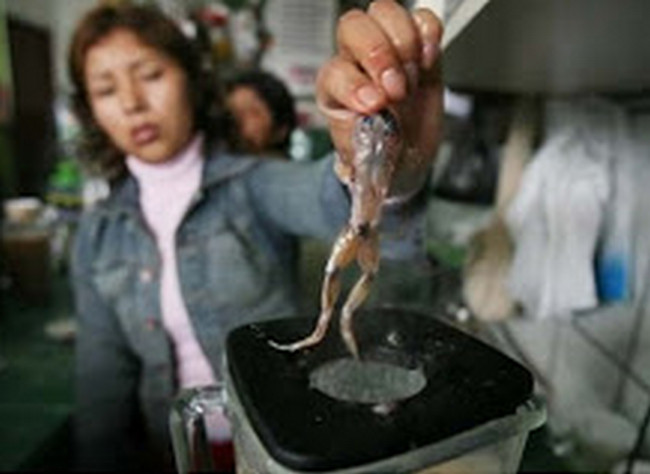 Inilah resep asli Peru untuk menyembuhkan impotensi. Sering disebut sebagai ‘viagra Peru’, Extracto de rana konon adalah aprodisiak terbaik dunia. Kodok dikuliti dan dicampur dengan kacang, madu, lidah buaya dan maca (tumbuhan Amerika Latin yang dikenal dengan kasiat erotisnya). Lalu tenggak hingga habis untuk ereksi seketika!