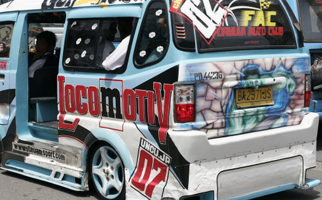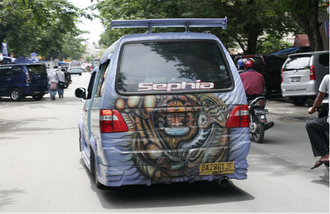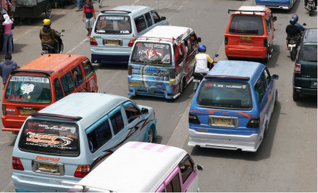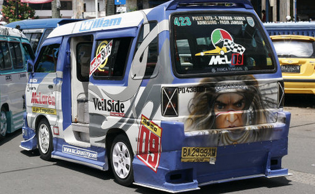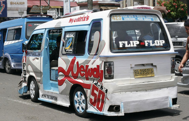 Di Kota Padang angkutan umum nya yang rame dengan berbagai aksesoris di seluruh body mobilnya..Jangan kaget juga bila naik angkot di Padang, karena disetiap angkot akan terdengar suara musik yang berdentum keras..naik angkot tapi serasa di diskotik...he..he..Inilah contoh beberapa contoh angkot yang ada di kota Padang: