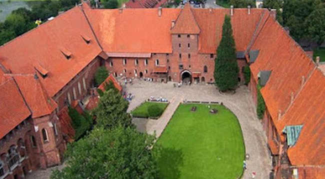 Malbork adalah Istana Marienburg (nama sebelumnya) yang dibuat oleh Ordo Teutonik dari bahan batu bata dan terbagi atas tiga bagian yang terpisah. Mulai dari bawah, atas dan tengah terpisah oleh beberapa menara dan rerumputan. Luas Malbork Castle bisa mencapai 21 hektar atau empat kali lebih besar dari Istana Windsor dengan penghuninya sekitar 3 ribu tentara.