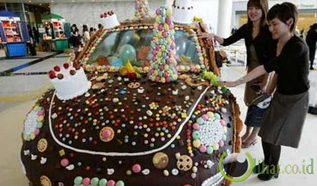 [lihat.co.id] - Sebuah perusahaan mobil Cina menutupi sebuah mobil Volkswagen Beetle dengan 440 kilogram cokelat untuk Hari Valentine tahun 2007. Awalnya beberapa pekerja menutupinya dengan bungkus plastik agar cokelat yang meleleh itu tersebar ke seluruh mobil dan permen digunakan untuk menghiasinya. Mobil itu pun kemudian ditampilkan di luar toko grosir di propinsi Shandong.