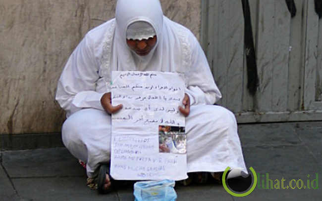 Arab merupakan salah satu negara yang sudah maju. biasanya pengemis2 disana memanfaatkan moment disaat orang2 datang ke mesjid untuk sholat. seorang pengemis pria mengatakan biasanya ia meninggalkan istri dan anak perempuannya di depan mesjid untuk meminta-minta.