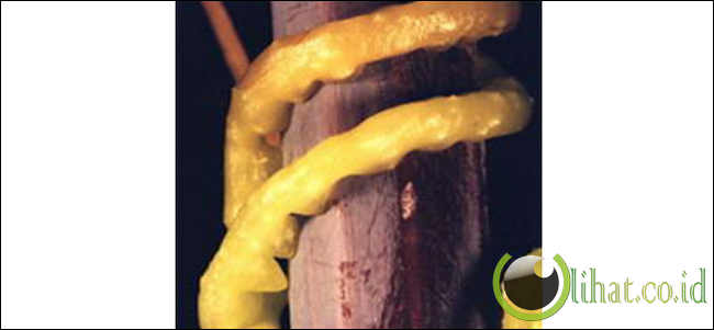 Setelah itu dia merayap di batang korban, melekat erat, melilit sambil menekankan duri khusus sampai menembus kulit batang, untuk menghisap si mangsa.