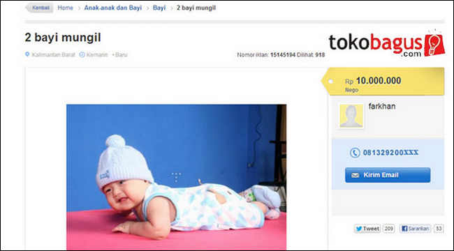 Liputan6.com, Jakarta : Komisi I DPR RI meminta agar Pemerintah melalui Kementrian Komunikasi dan Informatika (Kemenkominfo) menutup situs tokobagus.com. Hal itu terkait dengan adanya penjualan bayi berusia 18 bulan di situs jual-beli tersebut.
