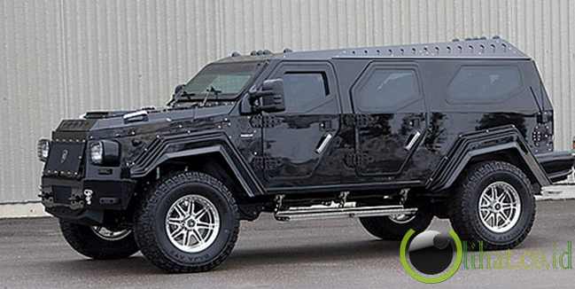 [lihat.co.id] - Mobil jenis Sport Utility Vehicle (SUV) ini terinspirasi dari Gurkha LAVP dan dibuat oleh perusahaan Kanada. Knight XV dibekali mesin V10, yang mampu melontarkan tenaga 400 hp dan torsi 498 lb-feet, dan dapat menggunakan bahan bakar bio. Mobil ini dilengkapi dengan karpet dari kayu Wilton, 6 kursi, night vision. Knight XV dibanderol US$489.000 atau sekitar Rp4,4 miliar.