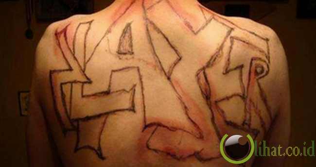 [lihat.co.id] - Fanatisme fans yang satu ini memang luar biasa. Ia rela menato punggungnya dengan nama band favoritnya, Slayer. Untuk menunjukkan kecintaannya, ia bahkan menulis tato tersebut dengan menggunakan pisau. Namun sangat disayangkan ia tidak lebih dulu memperhitungkan ukuran huruf per huruf sehingga huruf 'R' tampak terjepit hingga masuk ke ketiaknya.
