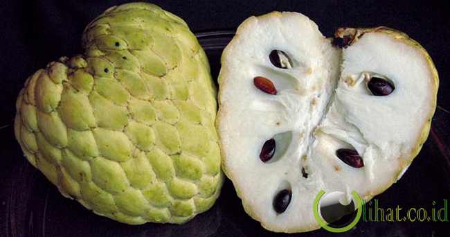 [lihat.co.id] - Julukan dalam bahasa Inggris terhadap buah yang masamnya luar biasa ini adalah Soursop atau Guanabana. Biji yang besar-besar dan banyak sekali membuat buah ni lumayan sulit dinikmati, tapi jika anda bisa menikmatinya, ternyata rasa buah ini ternyata dianggap sebagai gabungan antara strawberry dan nenas (buat orang bule)Buah super masam ini ternyata banyak sekali mengandung vitamin C, B1 dan B2, dan banyak dinikmati oleh orang Amerika Selatan sebagai bahan es krim bahkan soda rasa sirsak cukup populer disana.