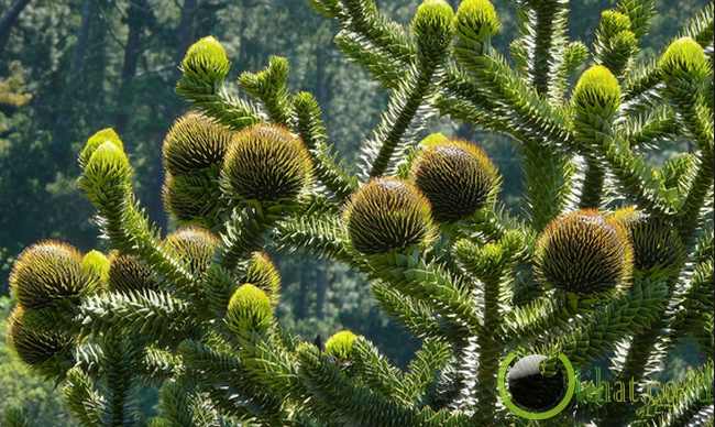 [lihat.co.id] - Araucaria araucana atau disebut juga Monkey Puzzle Tree adalah tanaman asli Chile dan Argentina. Pohon ini diperkirakan telah hidup sejak 180 juta tahun yang lalu. Pohon ini menghasilkan buah seperti almond yang biasa direbus dan difermentasi oleh penduduk asli untuk membuat minuman yang mengandung alkohol. Pemerintah Chile menjadikan pohon ini monumen nasional.
