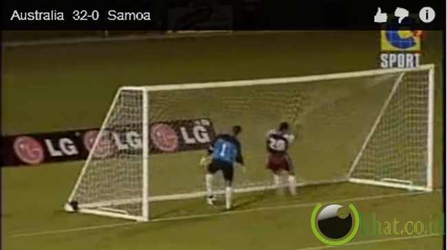 [lihat.co.id] - Rekor itu tercipta di laga kualifikasi Piala Dunia 2001 silam. Yang saling berhadapan adalah Australia dan Samoa Amerika. Kubu Aussie memborong seluruh gol di laga itu.